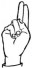 На ћирилици написано МИЛОШ ЧАОВИЋ састоји се из 11 слова [?]. Исписано ћириличном једноручном азбуком за глувонеме: